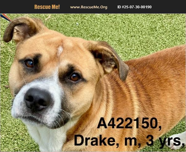 FREE ADOPTIONS THROUGH AUG 8! * weighs 54 pounds * heartworm test is pending * brought in as a stray along with another pup Carter (A422151), who has been adopted - found on Cliffdale Rd. * will be neutered upon adoption if not before * greets at door, with tail wags and a friendly face * paid no mind to other dogs in the yard * quiet and calm in and out of his kennel * good leash manners - follows your lead * friendly, social, loving, happy * gentle treat taker * smart - knows the sit command * enjoys endless back scratches and ear scrubs * listens well and eager to please Drake is a handsome and sweet boy who loves to make new friends. He sits right at the front of his kennel as he doesn't want to miss out on getting some extra pets or a yummy treat. He is friendly with everyone he meets. He will make a great walking buddy if you enjoy walks. He would also be content to be a couch potato and cuddle up right next to you for a movie night! Transport help may be available.
