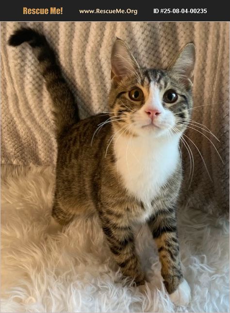 This kitten is in Tennessee. Adoption Donation $100 if picked up in TN.* Visit http://aarf-tn.com/adopt/cat-adoption-application/ to apply. Meet Bud - Your New Favorite Sidekick! Bud is a tiny explorer with a big personality packed into a sleek, short-haired body! This 2.5-month-old Domestic Short Hair kitten is a playful brown Tabby with white markings, and he's absolutely irresistible. Curious, confident, and full of charm, Bud is always ready for his next mini adventure-whether it's scaling a pillow mountain, pouncing on invisible foes, or investigating the mysteries of a couch cushion. His bold little hops and joyful zooms are guaranteed to make you smile. Bud has that perfect kitten combo: spunky and spirited, but also sweet and snuggly. He's the kind of kitty who will happily entertain himself-and you-with his antics, then curl up beside you for a well-earned nap. If you're looking for a kitten who's playful, brave, and full of love, Bud is your guy. He'll thrive in a home where he gets lots of attention, fun toys, and room to explore. Bonus points if you're ready to be his favorite cuddle buddy once playtime winds down! * $175 plus transport fee (varies) for adoptions to the Northeast. Interested in adopting? Take the first step and complete an adoption application on our website: http://aarf-tn.com/adopt/adoption-apps/ If you have questions that are not covered in the profile, visit the Pet Inquiry Form: http://aarf-tn.com/contact/pet-inquiry-form/.