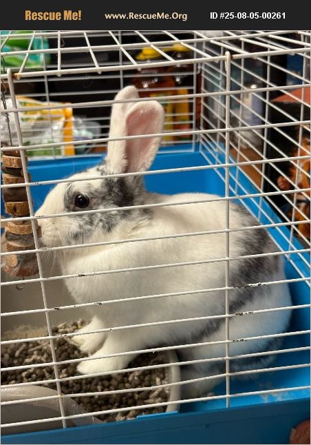 Great rabbit. We were told she is a mini Rex rabbit. She's the size of a Lloyd of bread. Long. She's great but can't keep her due to allergies. We have everything she needs that will come with her if someone wants her. We just want her to be safe and loved.