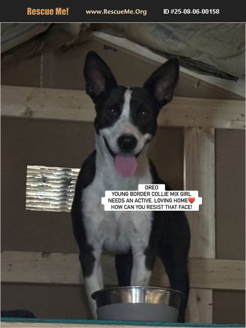 Dogtown Ranch Sanctuary, Rescue, & Rehab Rockdale, TX Meet Oreo: A Sweet, Adorable 4-month-old Border Collie mix girl!! Oreo is a sweet, active 4-month-old Border Collie Mix Girl who will steal your heart!!! She is playful, enjoys being around other dogs and people. As she is a young puppy, she will do best in an active family who give her some training, so she understands what you expect of her. If you are interested in meeting her and/or adopting this cutie, please email us at: [email protected]