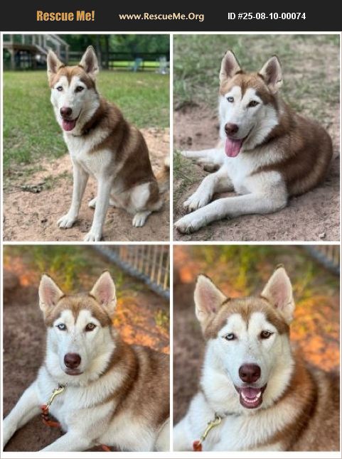 Sweet Samantha is looking for her forever home.Found as a stray. She is a 2 1/2 year old red and white siberian husky. Beautiful eyes! One blue and one amber. She loves to hang out by your side. She is housebroken and crated trained. Knows some basic commands and walks nicely on a leash. Would do well in an apartment setting.