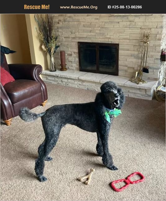 Denali is an 8-year-old large, neutered male black standard poodle that is currently owned by an elderly and disabled person who is no longer able to care for him. Denali is currently healthy, but he has a condition where his body does not produce the stress hormone, so needs a Zycortal shot every month.