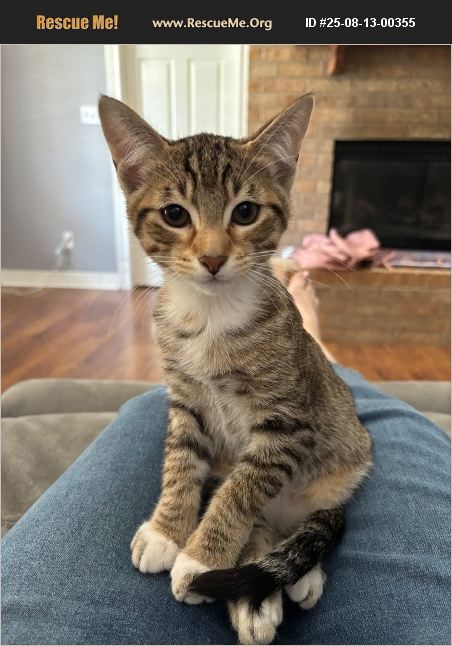 Sweet, spunky kitty. Loves to play. His Mama was brought home by my daughter and we've had them indoors only since birth. Date of birth is 4/24/25, one of 7 healthy kitties. We do have 3 dogs that we've limited interaction with. Will be neutered and have rabies shot if not adopted before I get him in.