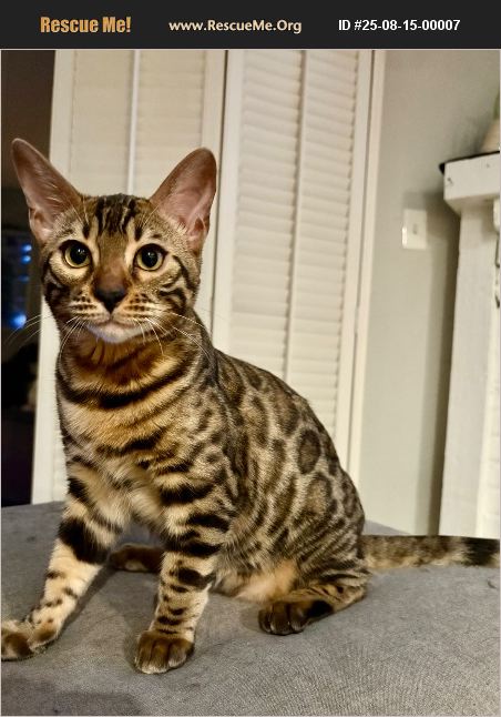 Woody is a very loving active boy. I got him at about 6 weeks old when he was tiny. He is very full of energy and loves to play. He loves any toy and has no problem turning random objects into toys as well. He loves to shower with me daily and is definitely fearless. He loves his physical activity and also loves to cuddle up with me and loves the company of my older cat who he loves to terrorize and cuddle. He would be great for an active home who loves playtime. He is very smart and a fast learner. I think he could be trained I had planned to train him to walk on a leash but just havent had the time but he is still very young. I want to find him a home with space to play and an attentive family to show him the attention he deserves. I have a brand new stainless steel litter box. Will also provide the food I have been feeding him. I got him neutered and microchipped. I also have a cat enclosure that that I have built to be about 6.5ft tall by about 5.5 feet wide. It is in 11' squares and can be configured many different ways so that he can safely play outside. Price for enclosure can be negotiated. I will also include a cat back pack so he can travel around. Only taken him on 1 walk in it and he was very vocal the whole time. I think its something he could grow to love. He definitely has his own little voice and will let you know when he wants something.