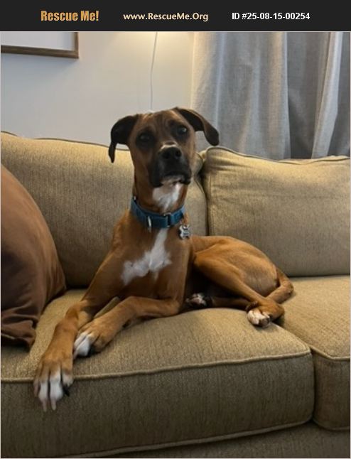 Elvis is our beloved 4 year old boxer mix who we got as a 5 month old puppy. Originally a rescue from Mississippi, Elvis had a rough start on the streets. He is an anxious boy because of this. W have spent a lot of money on training and have him on a daily anxiety medication that helps him live his day to day pretty well. Elvis is slow to warm up to new people especially men. He loves my husband and I so much and is very obedient to us. We have a 1 year old daughter however that he is very unsure of and starting to show signs that he is not going to be good with her. He has never bit a human however has previously snapped at myself when I was trying to scold him for destroying an item. This has lead me to the difficult decision that we need to rehome him before he bites my daughter. He can resource guard food and a favorite toy. Elvis loves to snuggle on the couch and sleeps politely in his bed at night. He's house trained and loves to play. He is not great on walks due to his street anxiety but loves a dog park and daycare. He currently lives with another dog and is very submissive to him as well as 2 cats which he doesn't bother with.