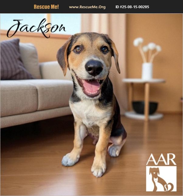 Jackson is a handsome, endearing puppy who wins hearts wherever he goes. With his calm and gentle spirit, he loves nothing more than cuddling with people. In his foster home, Jackson enjoyed life with a warm, social family, a large dog, and the family cat. He adores attention but also knows when it's time to relax, happily settling on his bed or in his kennel. A quick learner, Jackson mastered the doggie door in no time and loves trailing his foster family's dog on daily backyard adventures. Sweet, smart, and affectionate-Jackson is the kind of puppy you just have to meet. Est. DOB: 5/11/25 Weight: 21 lbs. AAR does not transport for adoption.