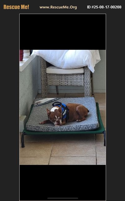 I am trying to keep both dogs together. I posted a pic of Peties sister Siouxsie. They are my twin brothers dogs. He passed on 7/3/25 but has been in hospital since 12/18/24. I only have my 86 year old Mother. I have a pit bull and mean frenchie. Petie is a very loving cuddle bug. He is blind but gets around pretty good once hes been around a bit. They both go potty outside.