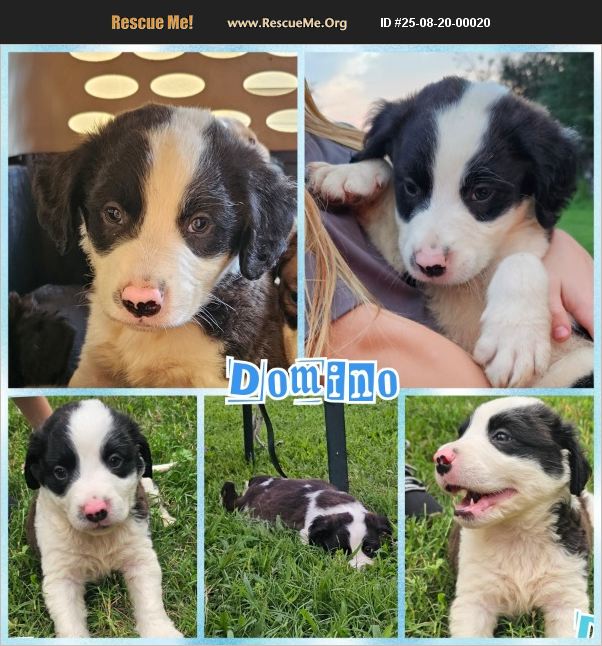 Meet Domino! Age: 8 weeks, approx birthdate 7/1/25. Breed: border collie mix. Size: approx 7lbs at this time, we believe he will be about 45ish lbs. Training: working on leash and crate training. They are just pups and will need continued guidance and training. Good with dogs/cats? Yes to both. Good with men/women/kids? Yes. Personality: friendly, affectionate, and playful. Reason for rescue: owner release, mom was hit by a car and they needed assistance with the pups. The pups are microchipped, and current on age appropriate vaccinations and preventatives. They will be required to be spayed/neutered before 6 months of age. If you are interested in adding this sweet baby to your family, please message for an adoption application. Adoption fee: $150.