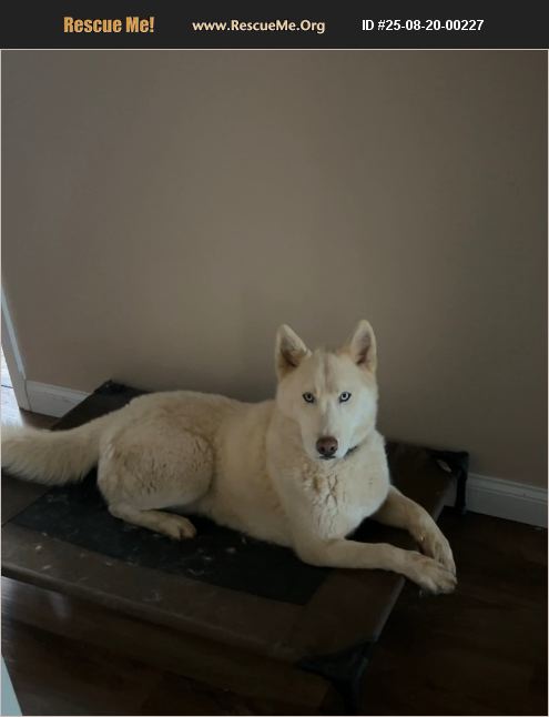 Tundra is a very affectionate CKC registered 3 year old white male husky with blue eyes. He has been neutered and is up to date on all vaccines. He weighs 68 lbs, is housebroken and crate trained. Tundra has a high prey drive and prefers to be the only pet. He is great with children and thrives when around people. He loves nothing better than being inside chilling with the family. Tundra enjoys FedEx deliveries because they always bring him cookies. He is currently contained with Invisible Fence. Tundra would like to find a forever home filled with lots of love and care by 9/30/25