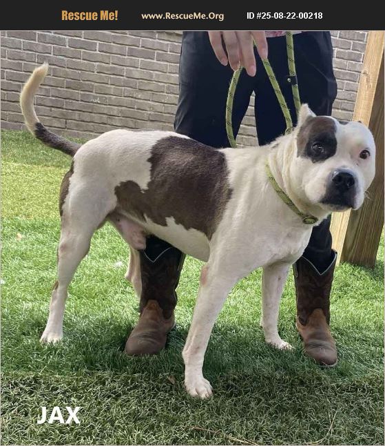 Jax is a 5-6 year old American bulldog/Pit mix who came to the shelter as a stray. He is current with his vaccinations and dewormed, but he is heartworm positive. He only needs to have a monthly heartworm prevention. He is good on a leash, friendly, good with other dogs and people.