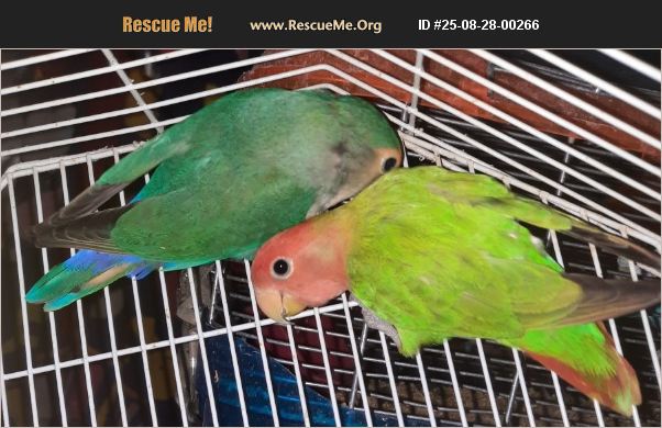 Bonded pair of lovebirds. Have been together since birth, they cannot be separated. They are about a year old. Comes with average size cage. Price includes both birds and cage. We just do not have time for them lately. Both are healthy, eats seeds and pellets, also loves fresh spinach, oranges, apples, but no seeds