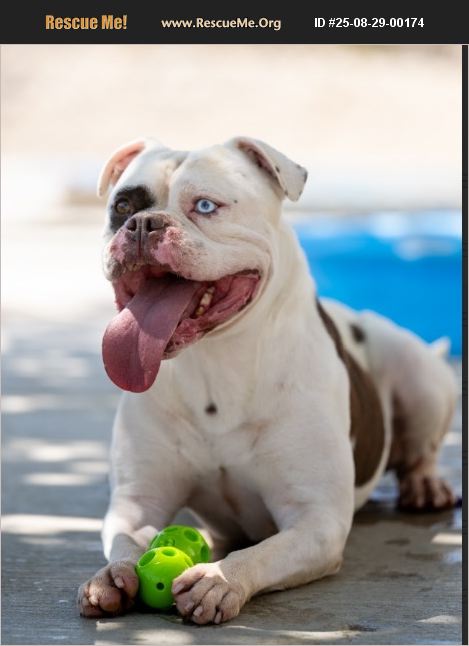 This animal is available to licensed rescue groups only. Please do not enquire unless with a licensed rescue group. Blitz is a handsome 5-year-old American Bulldog with a big heart and a love for fun! He was found as a stray and no one came to claim him.This sweet boy walks nicely on the leash and absolutely adores playing with his toys. Whether it's a game of fetch or just carrying his favorite squeaky around, Blitz is happiest when he's having a good time by your side. We haven't yet socialized Blitz with other dogs here at the shelter, so if you have canine companions at home, we recommend a meet-and-greet to ensure it's a perfect match. Blitz needs to be neutered and any rescue who would like to pull him would need to neuter him within 30 days of his rescue. He's UTD on DA2PP & Bordatella but needs to be neutered and get rabies vaccine.