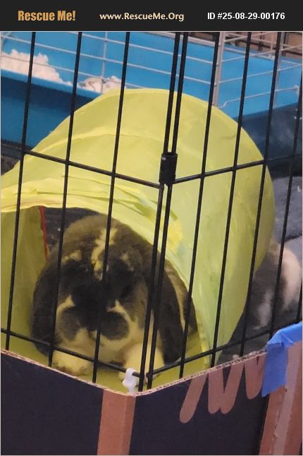 This little guy was taken out of an situation where euthanasia was planned and is currently hopping around an impermanent enclosure in a foster situation not well suited to bunnies (several cats). He's a grey and white lop, was neutered on arrival to current place. He loves the playing in his tube and is Very good motivated. Used to daily salad, bowl water, unlimited hay, small amount of pellets. Will gladly answer any questions!