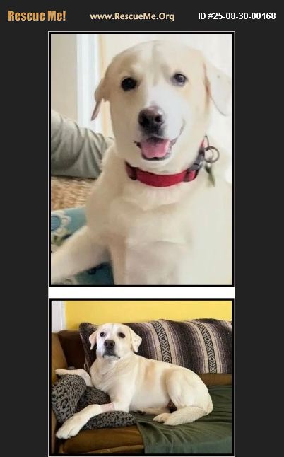 Hello! It's so GREAT to meet you. My name is Charming and, true to my name, I am a lucky charm. I'm one of those wonderful Velcro dogs who loves attention and being petted. I am looking for a best friend/family who will take me on long walks or hikes and snuggle with me on the couch. As you can see, I'm very handsome and strangers always smile when they see me coming. Okay, my personal details - I'm 6 years young, a Yellow Lab-mix and weigh about 60 lbs. I know how to sit and shake and can even do a circus trick of sitting up on my hind legs. My foster mom says it is adorable. I'm not aggressive with other dogs and I'm not destructive in the house or a chewer. I love riding in the car. I don't bark much and, according to my original owner, I'm good with cats. And I'm completely housebroken - not a single accident. Did I mention that I love people?? I will look at you with adoring eyes and follow you everywhere. My foster parents tell me that I am a VERY good dog. Currently, my foster parents are working on my manners. I've got medium energy, and I get several long walks a day which keeps me from getting bored, but on walks I am so excited I tend to pull on the leash when I'm not sniffing the grass. I really like all the smells! I am curious about other dogs and am respectful when we meet on our walks. But my foster parents think that I may not have been socialized with other dogs when I was younger because when I get excited and may try to play inappropriately with them. Who knew other dogs don't like being jumped on? So, I may do best in a one-dog family and avoid dog parks. I can be suspicious of new people when they come into my house and I may bark at them, but as soon as I greet them properly, I love them. My foster parents also said I can get anxious (whining and barking) when left alone because I had been left alone so much when I was young. So having someone with me most of every day (ideally retired or working from home) will make me very happy. I'll need lots of understanding and patience to help me settling into a new home and manage my separation anxiety, but I think it will lessen considerably within a few months after I feel safe and secure. My foster parents tell me that I'm happiest when cuddling on the couch or being walked. In summary, I'm a big cuddle bunny with lots of love to give and will thrive in a home where I get LOTS of attention and several walks a day. *******Adoption fee: $350 plus $35 microchip fee******* Charming is being fostered in the Portland area. PACIFIC NORTHWEST and NORTHERN CALIFORNIA APPLICANTS ONLY: Oregon, Washington, Southern British Columbia, Western Idaho and Northern California. Please do not inquire if outside these areas. Golden Bond DOES NOT adopt to families with Children under 10. Home ownership and secure 5-foot fencing is required.