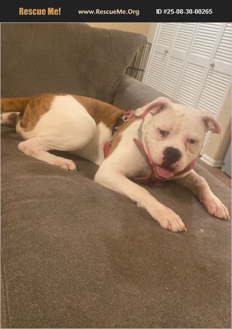 White with fawn spots. 84lbs. Mochi is a 2yrs old American Bulldog. She is kennel trained, potty trained, Mochi is an indoor dog who loves car rides and walks on a leash. She'd do well with an easy-going male dog or as the only dog in the home. If you're ready to provide her with a life of love, patience, and companionship, I'd be forever grateful. My hopes is for Mochi to find a forever home
