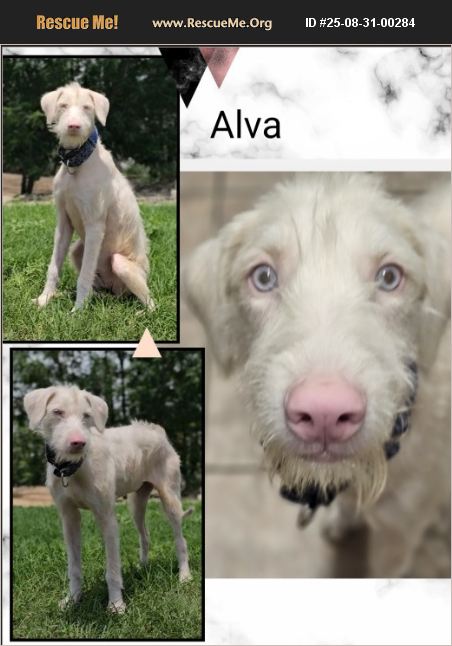 This gorgeous girl is named Alva, which means white wolf. That said, I call her Pinky because when she smiles at me, all I see is Pink. Pinky has been DNA tested and is an Albino. She is 70% Doberman and 22% Old English Sheepdog. She is not an outside dog!! Pinky loves to run, her best day is racing all of the other dogs here. She is well behaved in the house and will let you know when she wants to go outside. Albino dogs do require a bit of extra care, so please look into that while deciding if she will fit in your family. She has no skin issues and does not currently have any allergies. She needs to be on preventatives and she cannot be left outside in the sun for long periods. Pinkie is NOT a novelty and we will be extra careful to make sure her new family is responsible and that they will care for her and protect her skin.