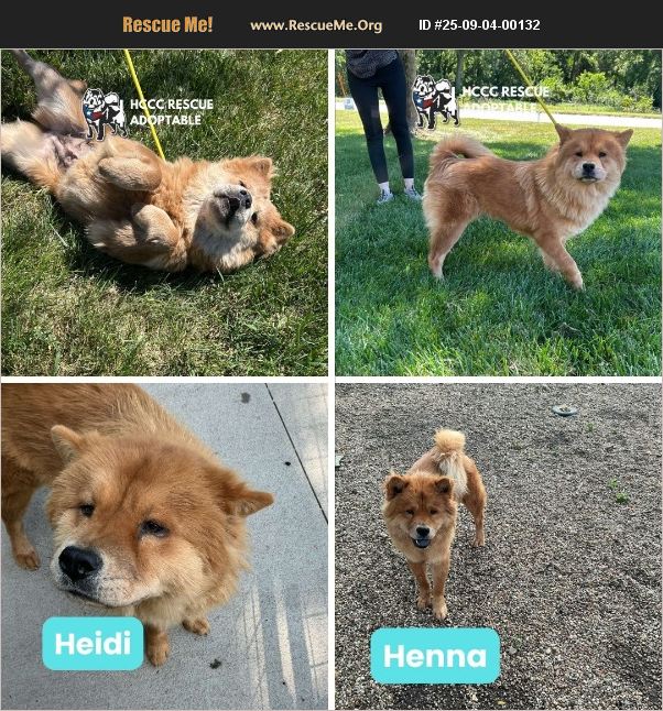 Henna & Heidi - Two Sweet Chow Sisters Ready for Their Forever Home These two beautiful girls are finally safe and starting to shine! Henna and Heidi were once scared and unsure, but with time and love, they've shown themselves to be calm, gentle, and happiest when together. These sisters are incredibly bonded, and while they could be adopted as a pair (they just need to be fed separately), they would also thrive in homes that understand their sweet, cautious nature. About Them: - Both are smaller chows, about 44 lbs each - Fearful at first, but completely handleable and learning that people can be kind - Sweet, soulful, and ready to trust again These girls were once out of time, but now they've been given the chance to decompress, grow in confidence, and show their true personalities. They're learning to enjoy human companionship, and with a patient, loving family, they'll blossom into the wonderful companions they were always meant to be. **Henna & Heidi are being fostered in Red Oak, IA Paid transport can be arranged. Transport costs range from $200-400.** If you are interested in adopting, please complete an application @ https://form.jotform.us/41173109602142. Once approved, home visit and reference checks are also required. If you have further questions outside of this listing, please email [email protected].