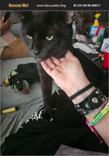 Indica is a sweet 8 year old black cat. He is skittish because he has been abused in the past by the person who had him before me. He needs a good new home. He may hide at first. But he is so loving and loves pets.I cannot keep him where Im moving. I need to be out of where Im living now very soon.