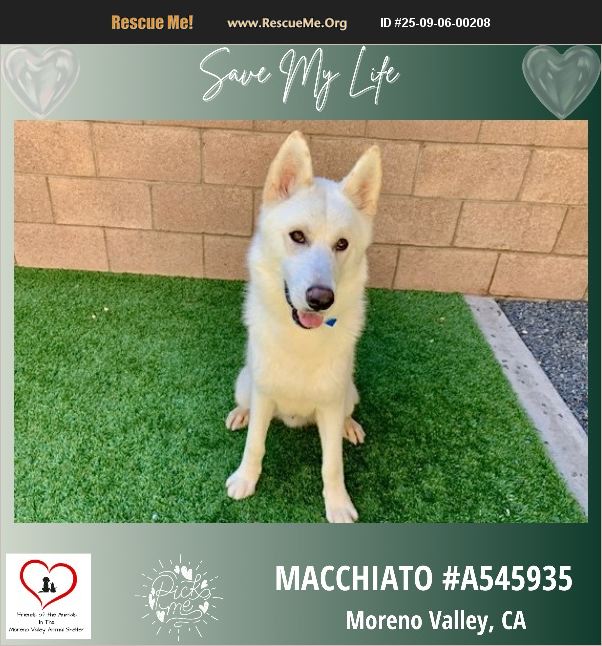 ID#A545935 I am described as a male, white Shepherd. The shelter thinks I am about 1 year. I weigh approximately 50.00 lbs. I have been at the shelter since Sep 05, 2025 and I may be available for adoption on Sep 12, 2025 at 4:06PM.