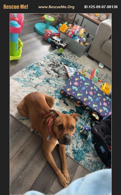 Needing to rehome my sweet girl :( She's unable to live with me & the family member that has her now said that i need to find somewhere else for her to go. She's great with kids(i have a 1.5 year old) and good with majority of people she just needs to be shown who is the alpha in the house.