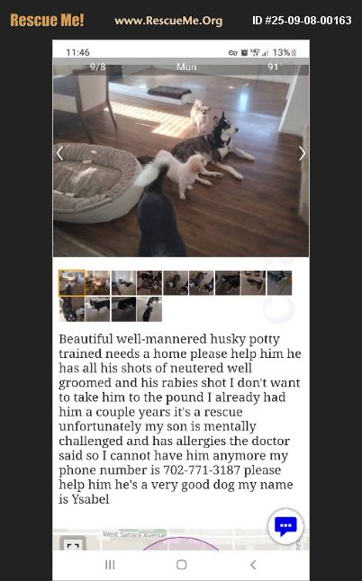 Hello I am a volunteer helping this lady, she goes from work to get her son, I fear she will not vet the person who picks him up for free off CL. The post may not be there long as ppl flag but her number is in the pic 702-771-3187 The dog is at a neighbors currently and cannot stay there