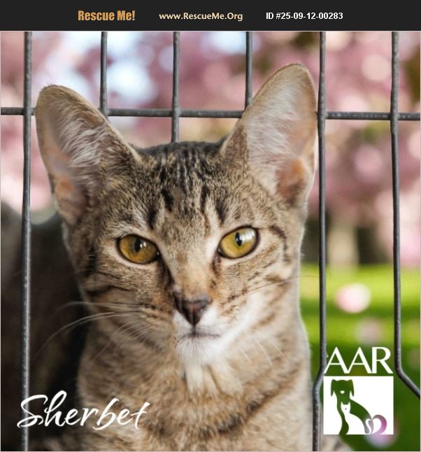 Sherbert is a bit of a mystery kitten. She is shy and timid when approached yet loved to talk and have conversations with her foster mom. Sherbert would often hide in her foster family's cat play room and watch what was going on but could be coaxed out to join in the action with a Churro treat.