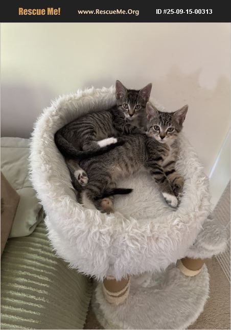 Melody and Muse are gentle, loving and happily bonded 9-week-old sisters. They are at a foster home, not at our shelter. Their foster says 'These kitties are great little eaters and will reward you with a chorus of mews at meal times. The girls are playful and sweet. They will cuddle up next to you (and each other) on the couch. Melody and Muse adore people and anyone willing to play with them. Wand and floor toys are their jam.' They are vaccinated for age, microchipped and healthy. They will be spayed before adoption. The adoption fee for each kitten is $225. If you would like to meet/adopt Melody and Muse, please complete our online application at https://daws.org/daws-forms or email [email protected] with any questions. Here is a video of these cuties: https://youtube.com/shorts/97iScHxCI6I