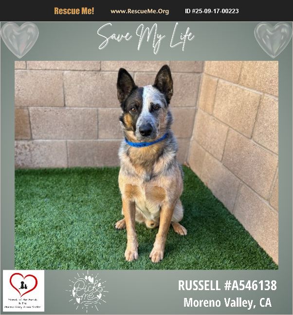 ID#A546138 I am described as a male, tricolor Australian Cattle Dog mix. My age is unknown. I have been at the shelter since Sep 13, 2025 and I may be available for adoption on Sep 20, 2025 at 12:37PM.