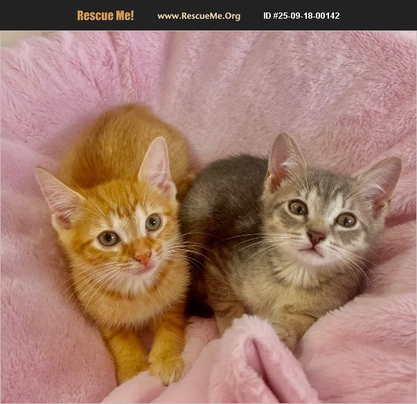 Emily and Paddy are sweet 7 week old rescue kittens. They are very affectionate and friendly! All vetting is done through our rescue program at no additional cost. They can go together or separately!! Paddy is an orange male, Emily is a grey female.