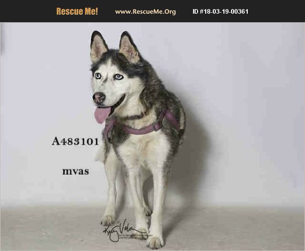 This DOG - ID#A483101 I am described as a female, black and white Siberian Husky. The shelter thinks I am about 5 years old. I weigh approximately 45.80 lbs. I have been at the shelter since Mar 19, 2018 and I may be available for adoption on Mar 27, 2018 at 3:43PM.