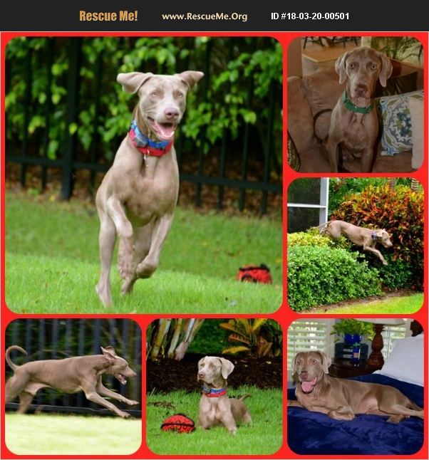 Another awesome Weimy Boy Awesome and totally sweet this is REIGN a beautiful purebred Weimaraner he is 4yrs old, and has beautiful Weimy features and all the Weimy traits. If you are a Weimaraner Owner, and want a boy to be your loyal buddy and you can give him an active life this is by far your boy, Reign's Story )))) Unlike most of the Weimaraners that come to us with a sad past Reign has a wonderful life with a wonderful family he is in rescue now his owners have another Weimaraner that is special needs, Reign and the other one do not see eye to eye and the owners have battled with this for a few years it is easier to re home Reign than having to do this with the special needs one. The Owners have made the most difficult decision to try to find a new home for Reign. Both boys deserve a life free of strife and full of opportunity to reach their full potential. Reign is aptly named he is definitely the king of the castle, Reign must go to an established Weimaraner Family that understands our breed this is essential, Reign is energetic he is also playful and will shower you with kisses he has that soft loving side to his nature he adores attention. He loves to run and play and he is always on high alert Reign is magnificent when he runs he is fast and pure joy to watch, He loves to go for walks He is taken out several times with his trainers to run on acreage and on the flip side he just loves to snuggle on the sofa sleep on the bed with you, Reign loves to be busy and he is up for any adventure, He does love men and would enjoy a man that will take him places and share fun, He is good at the dog park This boy is so lovable he deserves a family that will give him the love and attention he needs. Reign is a shadow and will follow you around and watch those Kitchen counters he is fast and can remove things in an instant Reign is highly intelligent smart and a quick learner, he knows if he has over stepped the mark like all Weimaraners he will test the waters to see what he can get a way with. Reign would do well at agility or dock diving with the right training and most likely phenomenal at fast cat. The next paragraph is from his owners ))))) Reign loves everyone, (especially men), wrestling, sleeping on the bed snuggled close to his humans, car rides, and is always up for adventure and learning new tricks. He is an amazing hunter, so a home without cats or other small animals will not be appropriate. Reign is always 'on duty' and needs a home where his brains and brawn can be put to good use. He is a superb athlete, but hasn't been convinced to try swimming. He loves to give kisses...lots of them. A family familiar with 'Weimy' traits...like counter serving, having the nose of a bloodhound (thus he can locate an edible crumb from a mile away), napping on the sofa and sleeping on the bed, as well as perpetual squirrel hunting would be best. I think Reign would be happiest being an only pup )))) Reign is housebroken, he will go to the door when he needs to go out to potty.He will come when called. He is neutered up to date on shots Heart worm Negative & Micro chipped, He is current on monthly preventative . He is happiest being in a family environment and enjoying freedom to relax in the home. We are looking to find Reign a wonderful Weimaraner forever home where he will have stability and security in his life. We are looking for a forever home that can cherish him and give him the love and attention he needs, A family that is really stable and can give him that forever home that means forever. Reign is so lovable, he is good around Children I would say older ones he has a lot of energy so small children may be a problem if he knocks them over. A family that will include him in their lifestyle and activities. A home with a large fenced in yard or acreage where he can run and play is ESSENTIAL Reign would do best as an only dog or with a submissive female, He really dosent need another dog he needs his person and someone that is home most of the day He dosent like to be alone for hours on end, No crates for Reign either he does not need to be crated, To adopt Reign it is a long term commitment a commitment that will bring you great joy Could you be the special family to open up your heart and home, and make Reign's life complete if so you will be rewarded with a wonderful , loyal faithful friend that will bring you endless hours of pleasure. Any avid Weimaraner Owner would be proud to have this awesome boy If you would like to be considered to adopt Reign and you have fully read his bio please complete our Adoption Request form the link is here. http://www.lifelinedogrescue.org/services/adopt/adoption-form Reign is currently in Central Florida, Out of state adoptions are considered but you must be prepared to travel to Florida to interact with Reign or any of our Weims, We do not transport or ship our Weimaraners,