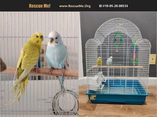 Blue Boy is a one year old Australian Parakeet. He is part of a bonded pair, he must be adopted with Yellow Girl. He is not fully tame. His foster parent is an experienced bird owner and can handle him to trim his wings and nails as needed. He will come with a nice new cage, toys and a month's supply of food.