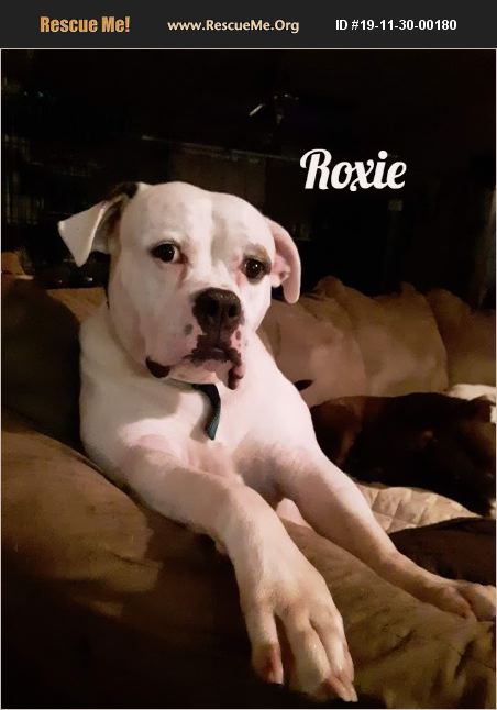 We know nothing about Roxie past, but we assume it wasn't a good one. We took her from a Rescue in TN that had had her for 3 months and could not place her. We are not sure why, but Roxie was afraid of just about everything. The television, the telephone, the doorbell, and just about any other sound. She was extremely fearful of new people and was starting to shut down by the time we got her. She transported here with a dog she had never met but bonnded with which was a huge help and then she was very excited about the dogs already here. Roxie has been returned twice through no fault of her own. Her first adopter decided they didn't want her. Her second adopter returned her with tears in her eyes because she could not keep her. Because Roxie is timid and shy so many changes make it difficult for her. We are hoping to find Roxie her real forever home this time. She is a 3 year old American Bulldog mix that weighs about 120lbs. She is still very timid when meeting people and it does take her time to acclimate, but she is a very sweet and loves attention once she is comfortable. Roxie is also a very low key dog. She is very calm and laid back in the house. She does like to go out and play with the other dogs but that is short lived due to her size. She is great with other dogs and cats. Her first adopter from 2 1/2 years ago had a daycare and she was fine with the kids. Roxie is spayed, vaccinated, heartworm negative, house broken and crate trained. However since she has gotten comfortable she has not used a crate. She is a sweet girl and would love a home before the holidays.