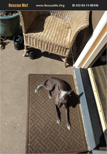 Moe is a rescue dog. He is a Peruvian Inca Orchid Hairless breed. We found him wandering the grounds of my mother in laws apartment complex. He is not microchipped and a diligent search for his owner has failed. He have had him for over a year, but cannot continue to offer him a home. He suffers from separation anxiety. He does not do well with children or cats. He does gets along with our dog. He is hard of hearing. We feed him soft food because his teeth are in bad shape. He needs way more attention that what we can give him.