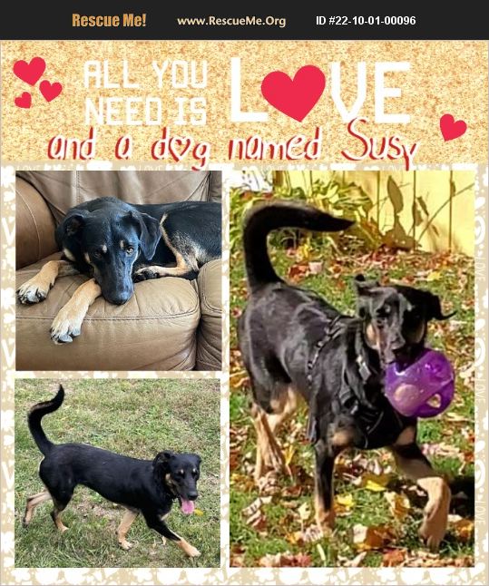 LULU'S SAYS MEET SUSY! SUSY is pup who loves everyone! Her pics don't do her justice. This adorable Shep / Houndy Mix is 9 months old, 40 lbs and calm and easy going! Susy is a quick learner. Is going up and down stairs, is potty trained. Loves people. Sweet SUSY is smart, eager to please and patiently waiting for her forever people to come. Is it you? SUSY is spayed and up to date on age appropriate vaccines. Adoption fee is $425. Please note that training is strongly recommended for all dogs. As with all rescue animals, breed determination cannot be validated without genetic testing. Visit WWW.LULUSRESCUE.ORG and click on the HOW TO ADOPT tab for an overview of the Lulu's Rescue adoption process. Thank you for adopting and saving a life -- you are SUSY's hero!