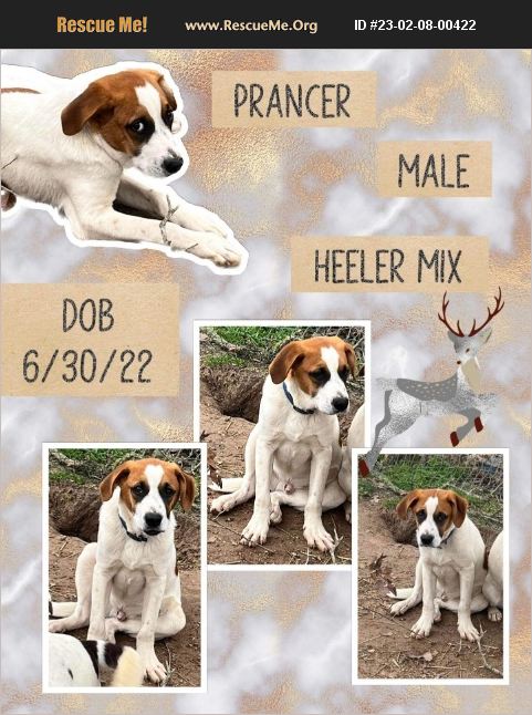 Prancer is very scared of people. He is about to go to a foster home to try and help him overcome his fears. He will need a home that understands that he's very shy.