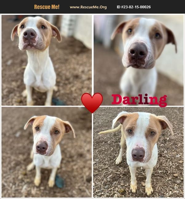 Meet Darling! Darling is a beautiful 1 year, female white and brown pitbull mix. Darling is a super sweet and beautiful girl. She is very loving and affectionate and is excellent in the home. She is good with other dogs and people. She would make a wonderful companion and family addition. Darling is spayed, up to date with vaccinations and microchipped. Please call for more information!