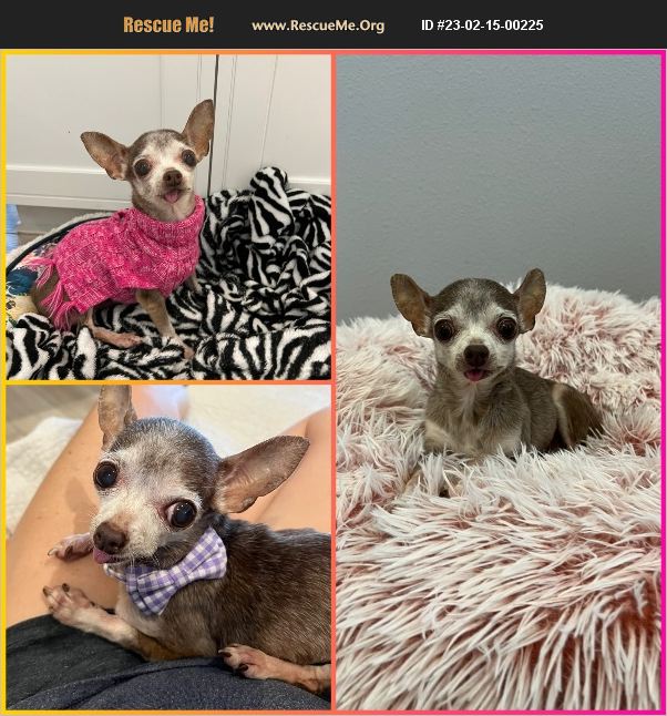 Tink is on the search for a family who will love her for the rest of her days. She's approx 10 years old and weighs only 3lbs. Like most Chihuahua's she loves burrowing under the blankets and enjoys sitting in your lap. Her tiny bark is adorable and she'll be sure to remind you when it's time to eat. She does go to the bathroom outside but also uses a pee pad indoors. Tink had a full workup with our vet and only has a mild heart murmur. She's spayed, current on vaccinations and microchipped. She is scheduled for a dental & mammary mass removal on 3/1 and will be ready to leave once she's healed. Requirements to adopt Tink- - No dogs over 10lbs - No kids under 13 living in the home If you'd like to give Tink a loving home send an email inquiry. We do not accept phone call inquiries. Tink is being fostered in Wesley Chapel, FL. Our travel time for home checks/adoptions must not exceed one hour.
