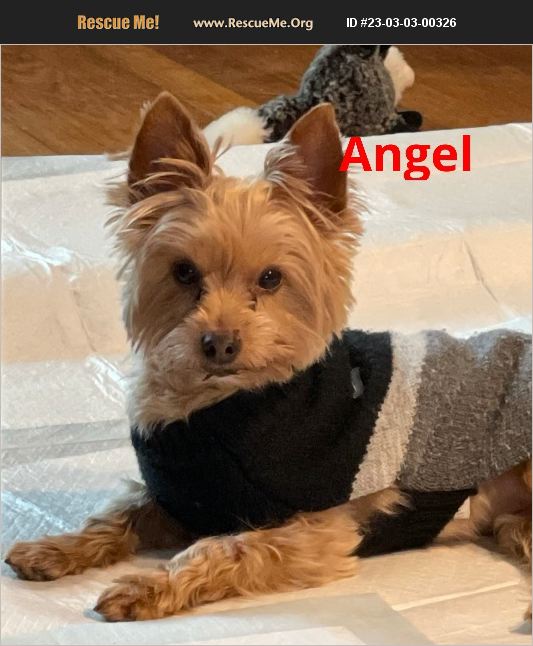 Angel is a 5 1/2 year old female, weighing 7 lbs. She is very shy. She is working on potty training and would be best as an only dog. Her owner passed away.