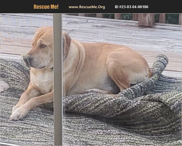River is a Shar-pei mix, she enjoys belly rubs. She has a vertical jump of nearly 6ft. She is about 80 lbs. She is crate trained but likes to snuggle. She will eat toys so best not to leave her alone. She will behave great outdoors but needs a fenced yard and leash when on a walk. Submissive to known people but will defend her yard from birds and squirrels.