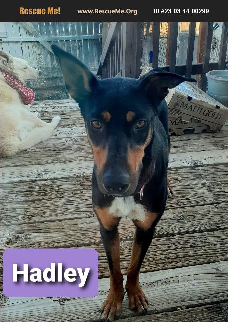 Hadley is needing a great forever home! Hadley is around 3 and is thought to be mixed Australian Kelpie, Dobermann Pinscher, German pinscher. She is super smart, sweet, gets along with other dogs large and small. She was found as a stray in Roswell and was rescued from the kill shelter. Hadley comes with all shots, spay, micro chip, dewormer.