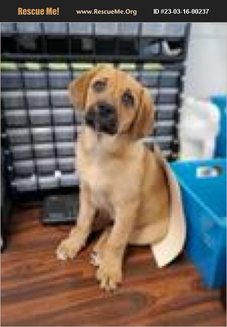 Josie was born on December 16, 2022. She is a Labrador Retriever/Rhodesian Ridgeback mix and will be a very big girl when full grown. She is light brown with a black mask and white tips on her back paws. She has a bit of the ridge down her back that is typical of the Ridgeback breed. She would be a great playmate for someone with time to give to her and can hold her own wrestling with other pets or with rambunctious children. Apply for Josie and give this sweet girl a home!