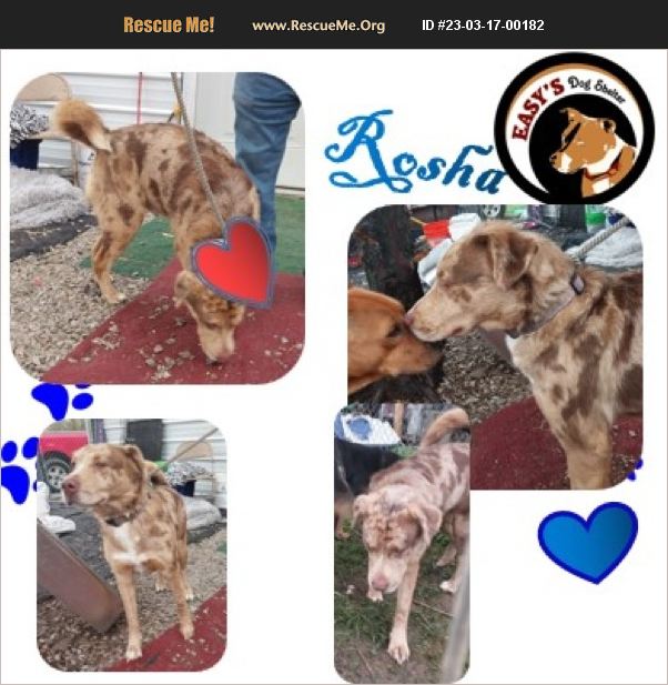 Hello there! My name is Rosha - nice to meet you! My owner had to move and couldn't take me and my two siblings with, so they surrendered us to the shelter. I mind well, know some tricks and I'm good on a leash. I'm good with kids, crate and house trained, and would love to sleep in a very big bed with you. I love kisses! I don't like cats very much, and if you don't full-feed I may show some food aggression. ADOPTION PENDING