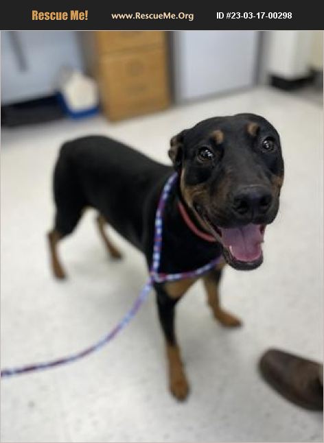 Dino is a 9MO German Pinscher mix who came into the shelter as a stray on 3/6/23. He weight 41 lbs.