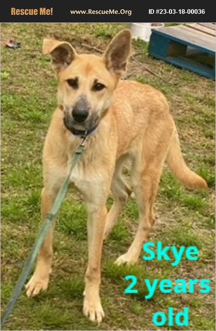 Skye is a 2 year old and appears to be a German Shepherd/ Lab mix! She weighed only 43 lbs when she was picked up by animal control and she is slowly gaining weight. We expect she will be close to 55 lbs once shes filled out. She is beautiful girl but is unsure of herself right now. She is a wonderful dog and eats up praise! She seems overwhelmed with lots of dogs but has done very well with our older GSD and likes cats. She loves kids! She is currently stressed when in a crate but we are working on this and working on her obedience. Skye has been spayed, vaccinated, dewormed, microchipped and was heartworm negative upon arrival. Her adoption fee is $200.