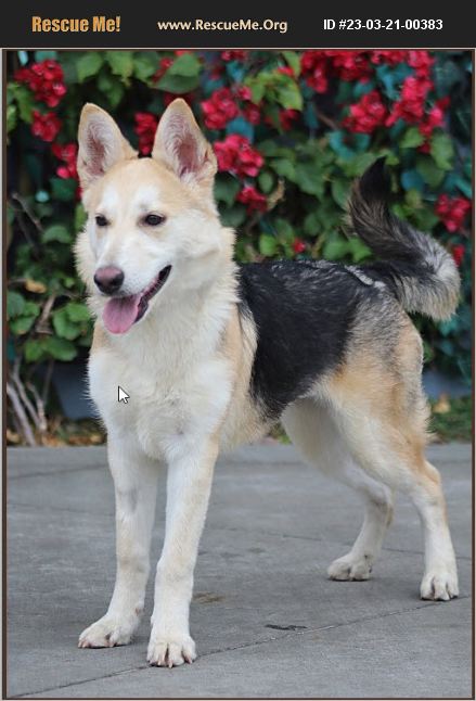 Essie von Esche is a delightful, 7-8 month-old Husky/Shepherd mix puppy. Happy little Essie looking forward tor her walk! She is still learning to heel like a 'proper lady,' but she just can't contain her enthusiasm for life and wants to explore the world. She does swimmingly with other dogs and is the happiest little girl when she invites them to play. Sweet Essie knows sit and shake. This active girl would love having another doggy sibling to play with at home and wants nothing more than to go on adventures with her forever family. She goes on our monthly hikes to Griffith Park, rode great in the car and got comfortable by making herself a little nest with some blankets. When you leave her alone, she knows how to entertain herself by playing with her toys or lying down for a nap. Sweet little Essie will be so excited to meet you! To meet this dog please fill out an application to adopt from Westside German Shepherd Rescue http://www.sheprescue.org/Application_to_Adopt_a_Dog Main.html