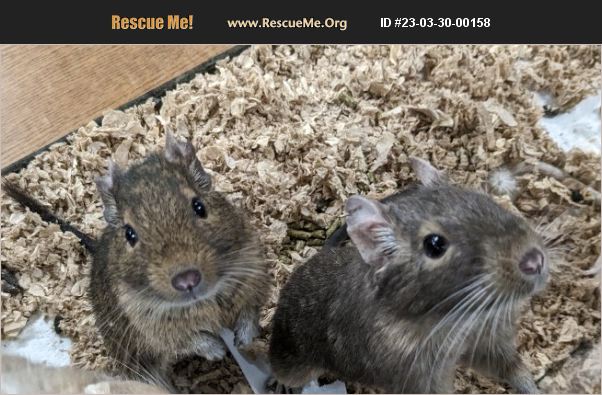 Two bonded female Degus. Approximately 3 years old. One brown and one blue grey. They must stay together $25 cash. Please text or message me if interested.