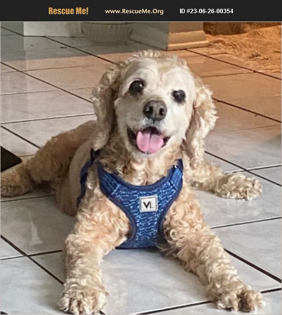 ADOPTION PENDING. Meet Chulo, an easy-going 12 year old, 26lb buff cocker spaniel with the oh-so-cutest curls. Chulo is great with everyone - dogs, cats and all humans and his tail is always wagging and he is always H.A.P.P.Y.-he enjoys life to the fullest and it shows in his attitude and demeanor. Chulo loves canine company and loves to be near his humans for lots of attention and treats. LOL He is a sweet senior gentleman - well behaved, quiet and reserved...but will always come to greet you as you step through the front door. Oh and he is always the first to be ready to go for a walk or car ride - nothing stops this little gent. Chulo is good getting bathed and groomed. He has great house manners but a home where he can go out frequently would be ideal. Typical for a senior, he has some arthritis and easily takes a daily glucosamine tablet and medication. A home with few steps, a doggie door and fenced in yard would be perfect for Chulo. If you would like to welcome Chulo into your family, please complete an application through our website, www.floridacockerrescue.org. His ADOPTION FEE is $225.