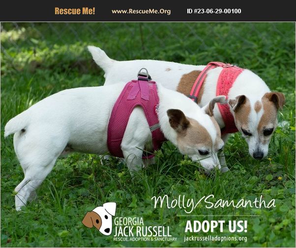 Hello, big world! Molly and Samantha here. We are a bonded pair who were left outdoors and ignored for a couple of years except for being fed. We came to the rescue in 2022 with cherry eyes and heartworms. The humans here helped us get rid of those nasty worms first, and we did wonderfully well. Next came fixing the cherry eyes, being spayed, getting our teeths cleaned, and having this little tracking chip thingie put into us. Whew! That was a lot - but all good stuff that made us feel a whole lot better than ever before. We still look to each other for companionship and support, so we need to be adopted together. That said, we are now much more outgoing and willing to engage with people than we used to be. It just takes time and patience and we will entertain you as we entertain each other. Molly is around 7 years old and Samantha is about 5. We tip the scales at a whole 13 pounds each. You can visit the website for an adoption application https://www.jackrusselladoptions.org/adopt-a-dog/
