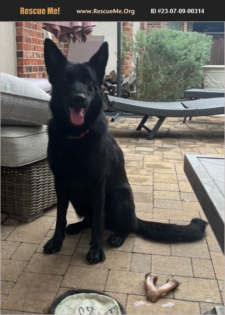 Female, black German Shepherd mix. Sweet, shy, and anxious. Found this scared girl on a busy road in West McKinney. She had been spotted running by several people throughout the day starting around Hardin/Virginia. Had no collar/no chip. Took to shelter and were told that she would be euthanized because she was too timid. They vaccinated and spayed her before we brought her back home. Our vet checked her over and believes she is around 3 years old. Does well in crate, house-trained. Very playful with our female dog and curious with our cats. We haven't observed her with children.